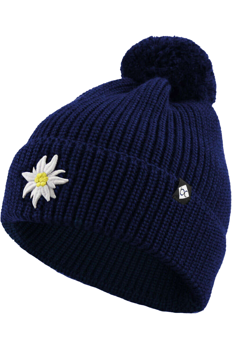 Kinder-Bommelmütze mit Edelweiß-Stickerei
