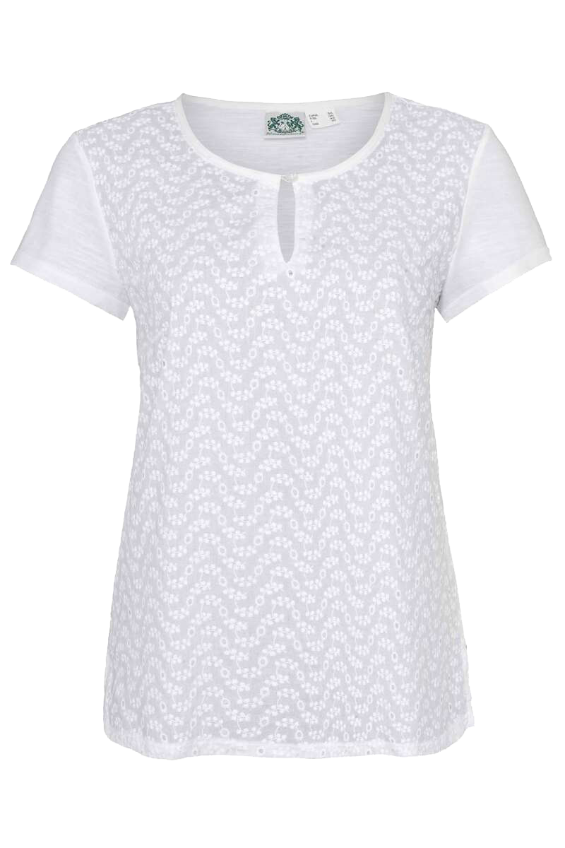 Damen T-Shirt mit floraler Lochmusterung weiß