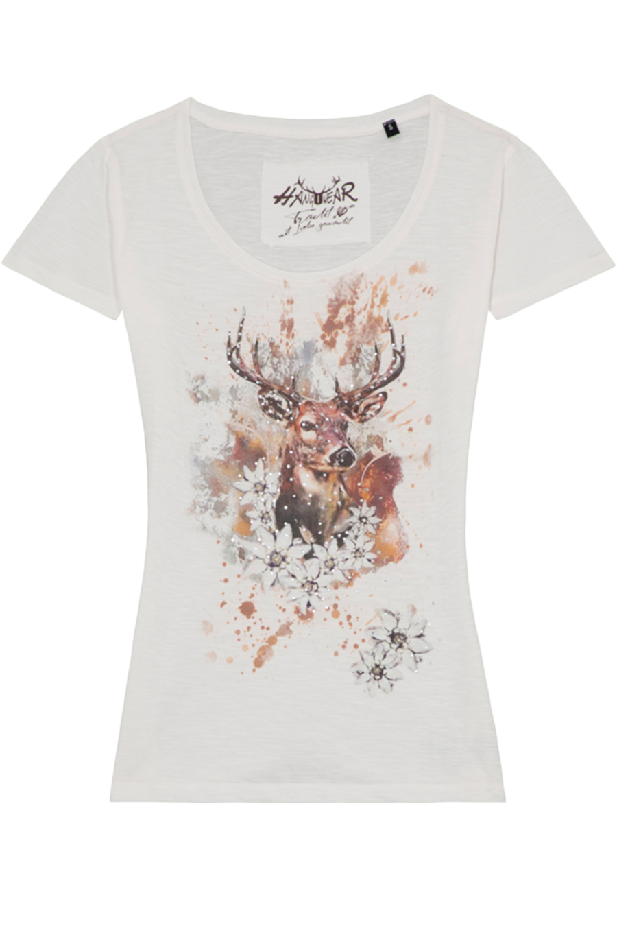 Damen T-Shirt mit Hirschkopf-Druck und Strasssteinen