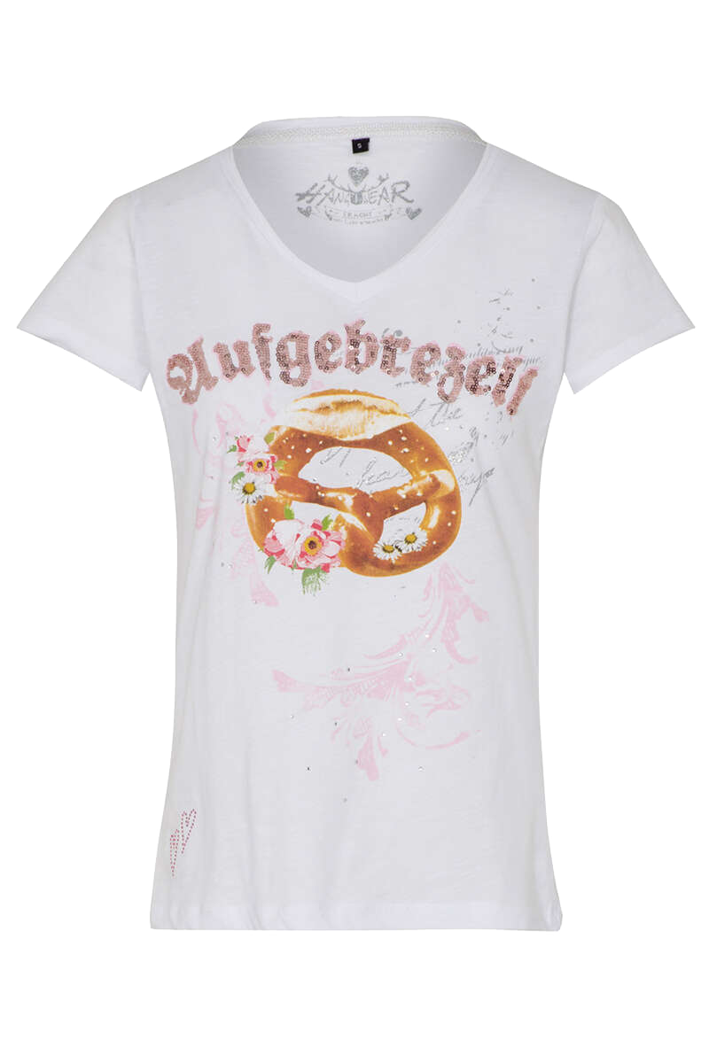 Damen T-Shirt V-Ausschnitt 'Aufgebrezelt'