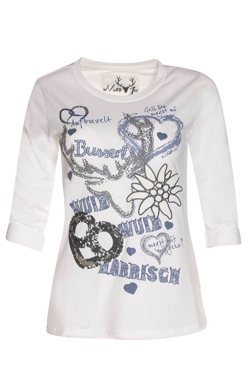 Damen Trachten-Shirt mit 3/4-Arm mit Pailetten-Applikationen