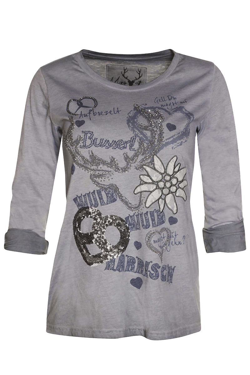 Damen Trachten-Shirt mit 3/4-Arm mit Pailetten-Applikationen