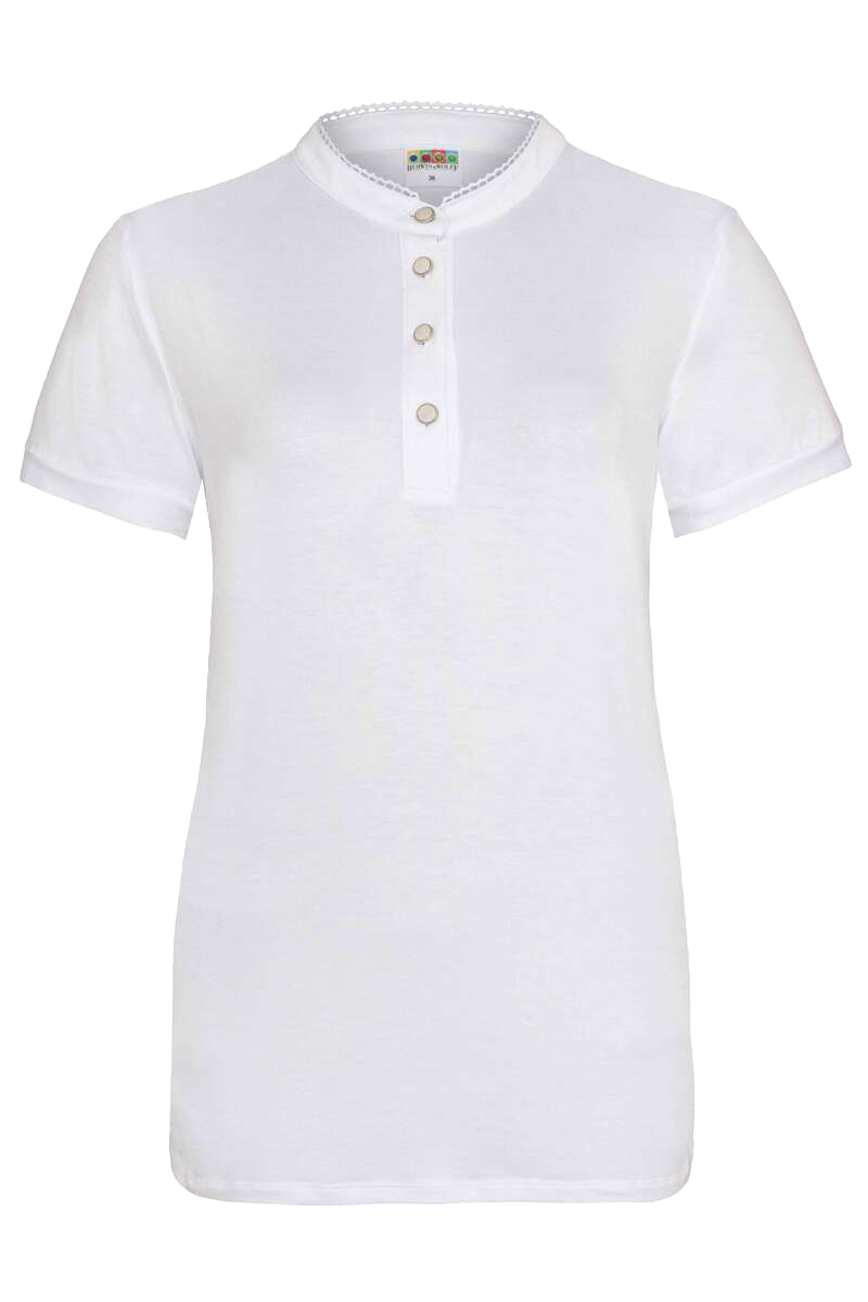 - Schlichtes weißes T-Shirt von Berwin & Wolff, vielseitig kombinierbar für Trachtenlooks oder Alltagsoutfits.