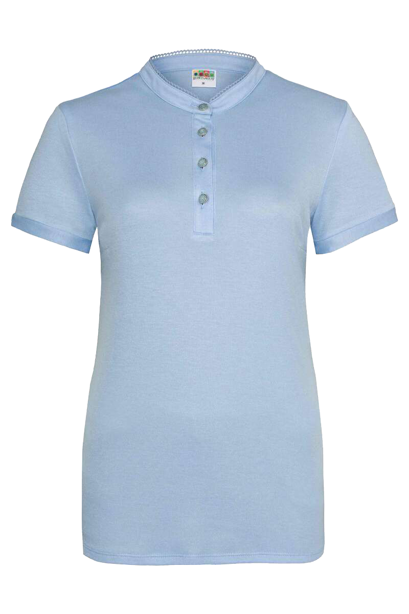 - Silberne Knöpfe in Perlenoptik und hübsche Spitzenborte am Kragen verleihen dem Oberteil eine elegante Note.