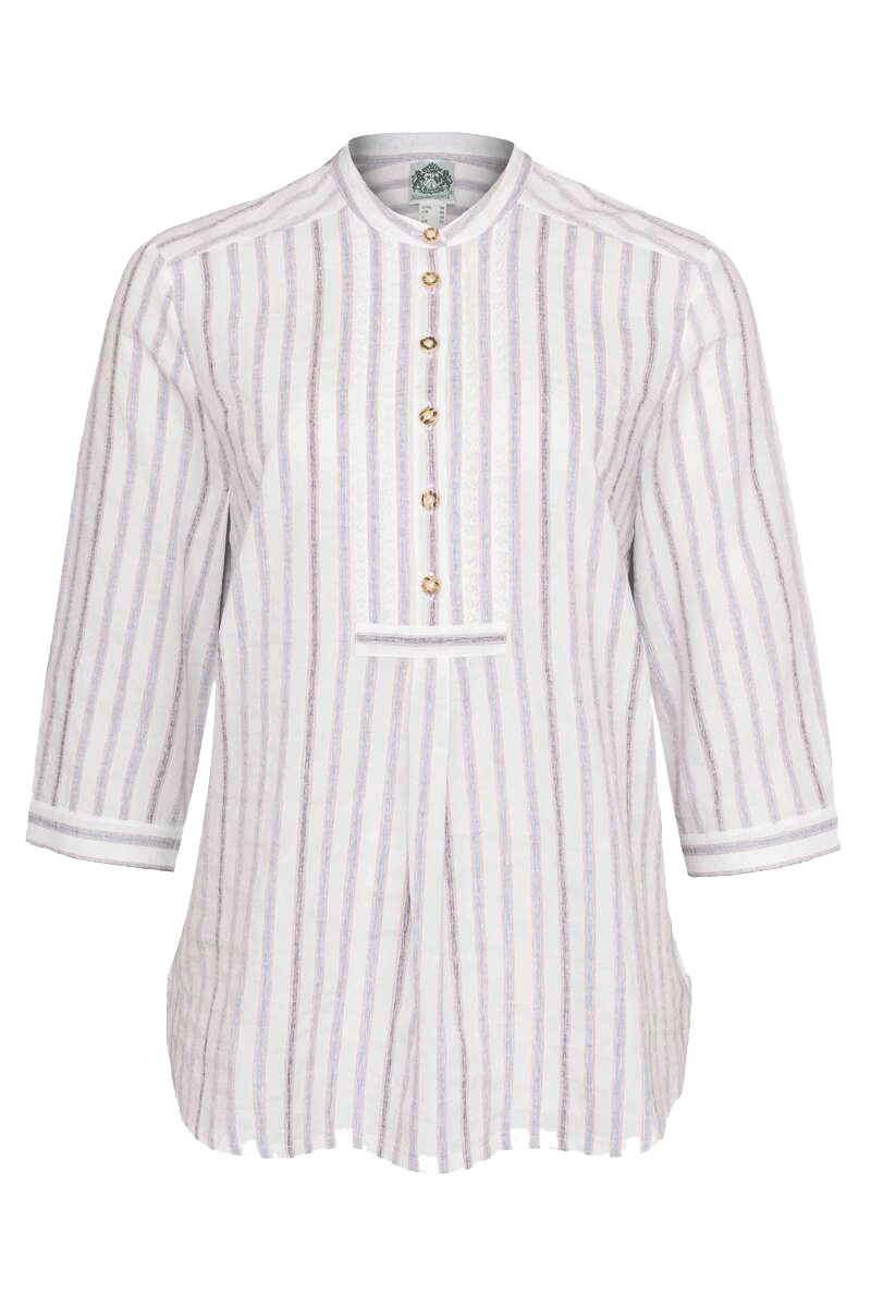 Damen Trachtenbluse Baumwolle-Leinen gestreift
