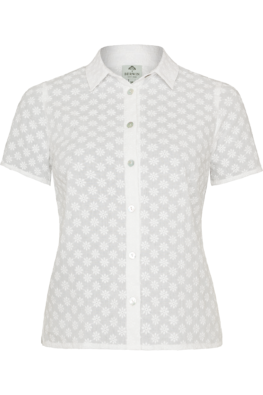 Damen Trachtenbluse Kurzarm und Blütenstickerei