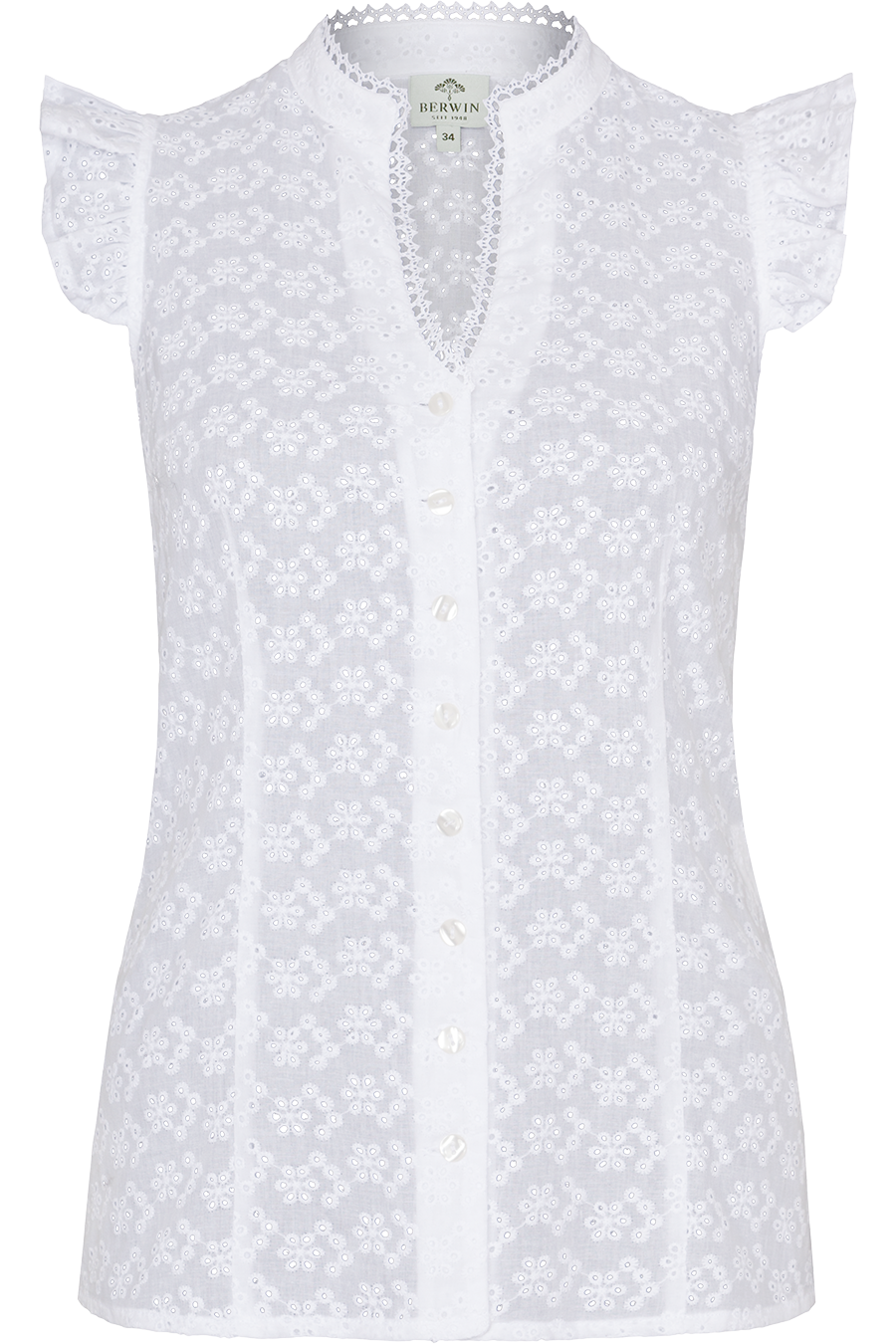 Damen Trachtenbluse mit Flügelärmel und Lochstickerei