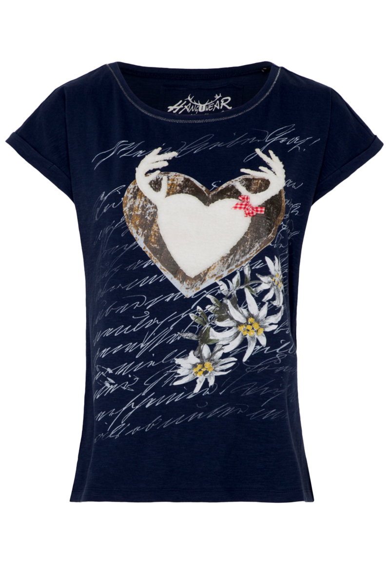 Damen Trachtenshirt mit flauschigem Herzaufnäher