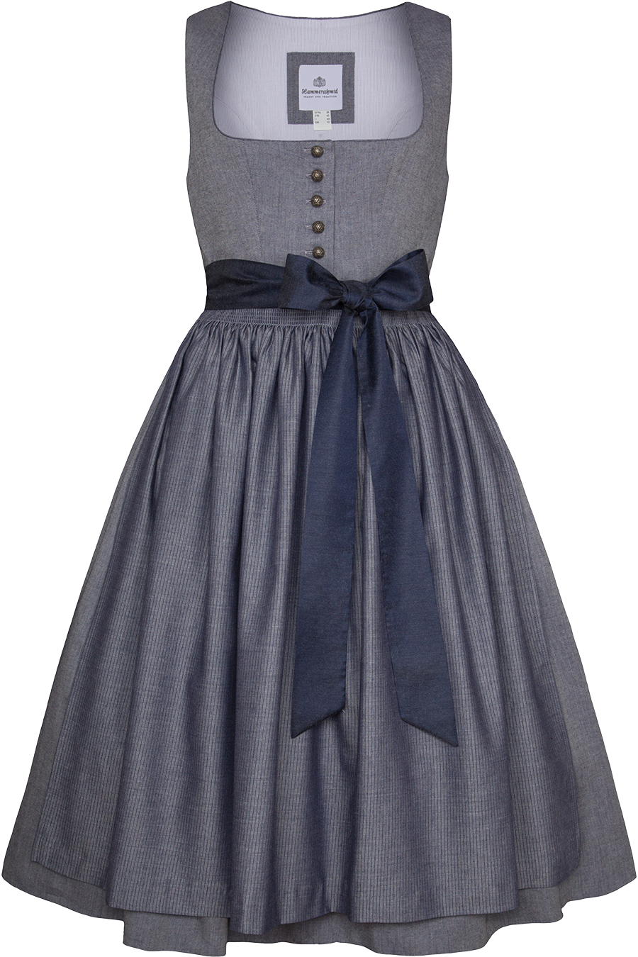 Midi-Dirndl mit eckigem Ausschnitt und Knöpfen