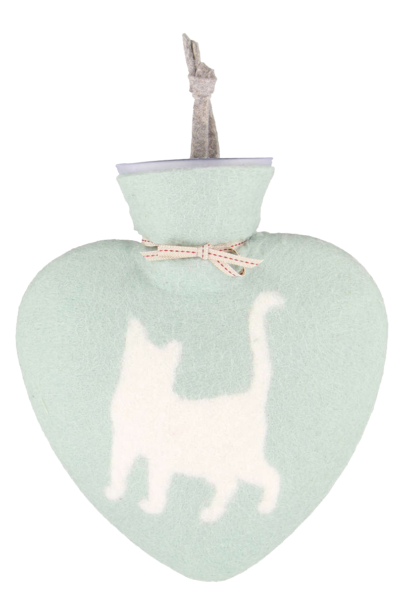 Wollfilz-Wärmflasche in Herzform Katzenmotiv
