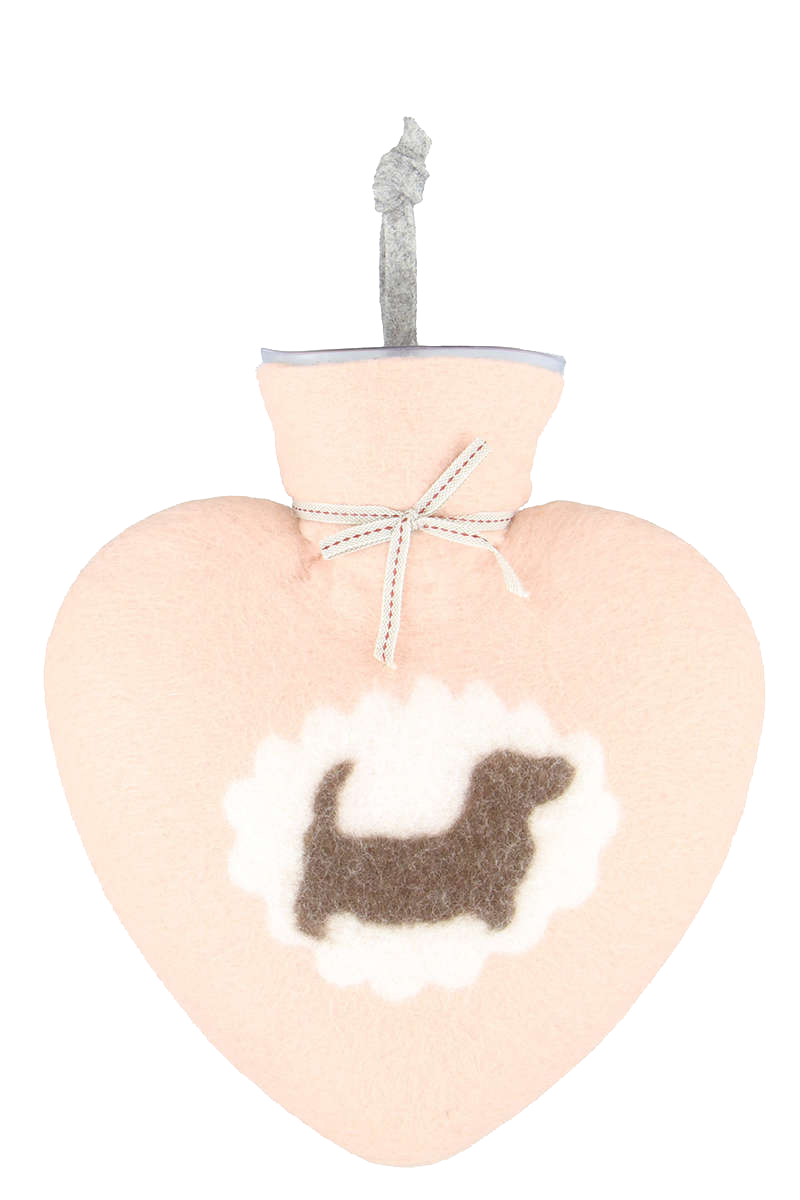 Wollfilz-Wärmflasche in Herzform mit Dackelmotiv