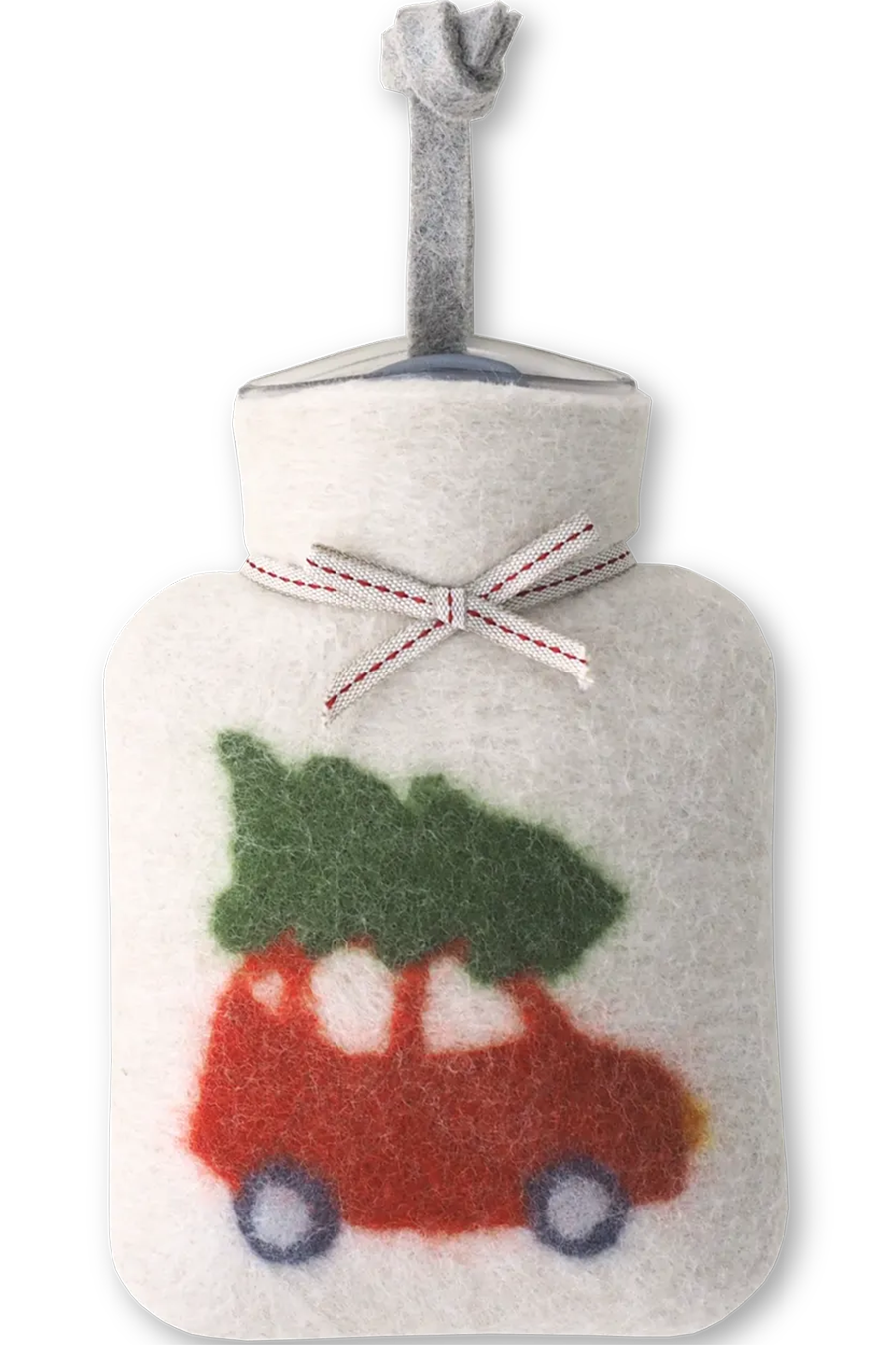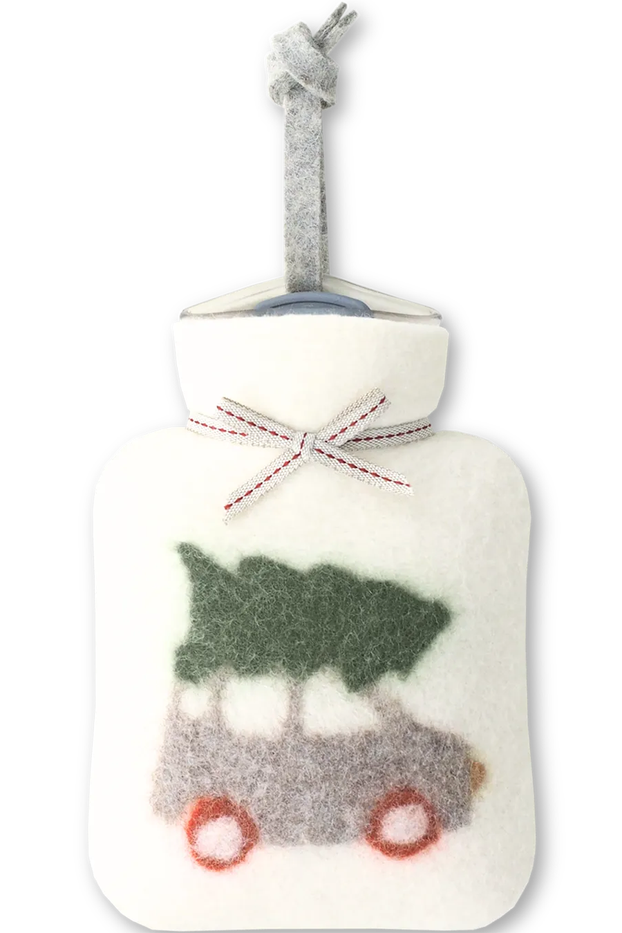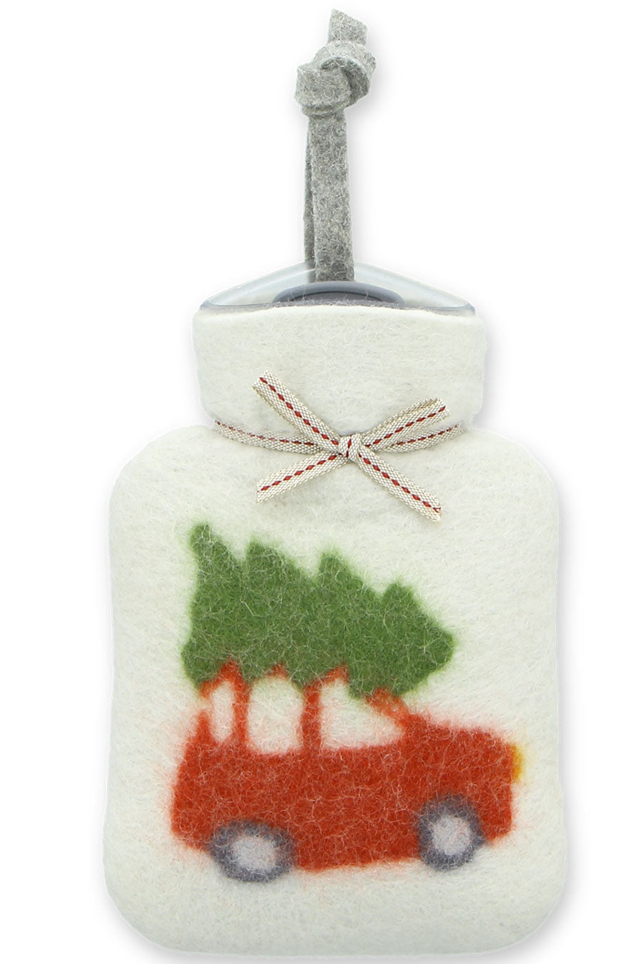 • Mit liebevoll eingefilztem Weihnachtsauto samt Tannenbaum und zarter Schleife verziert