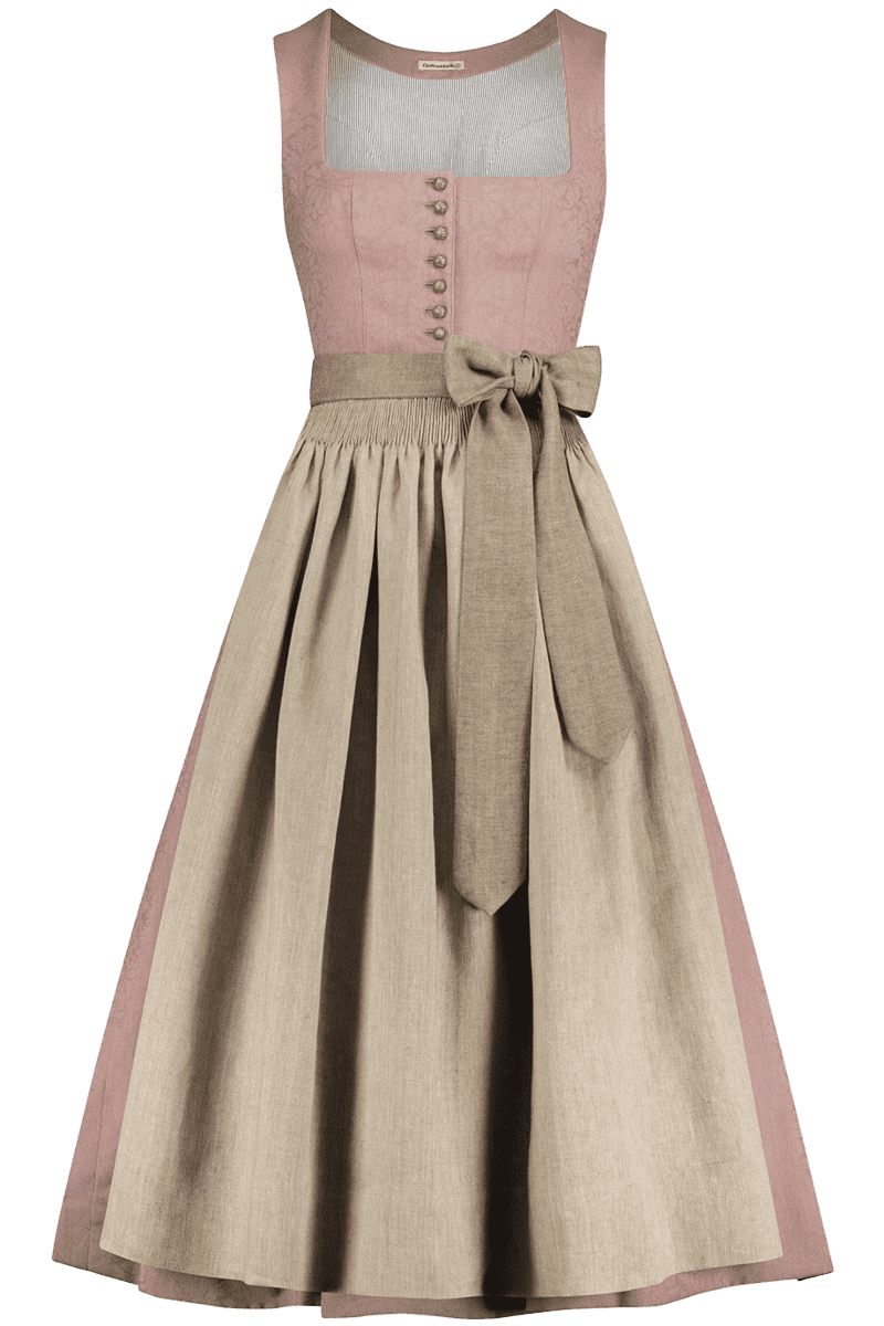 Dirndl lang mit Faltenrock und goldenen Knöpfen