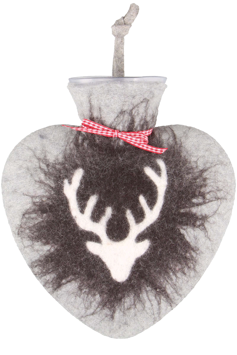 Wollfilz-Wärmflasche in Herzform Hirschkopf