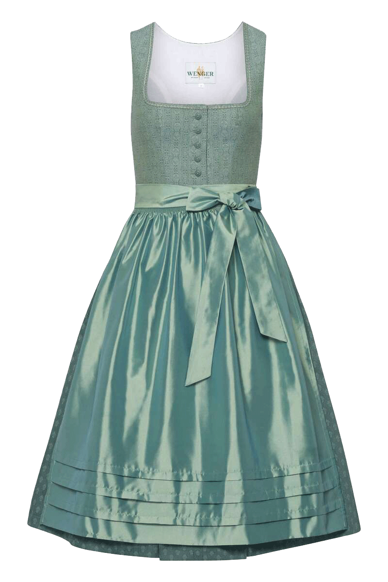 • Langes Dirndl der Marke Wenger mit lebhafter grüner Farbe und vielen Verzierungen.
