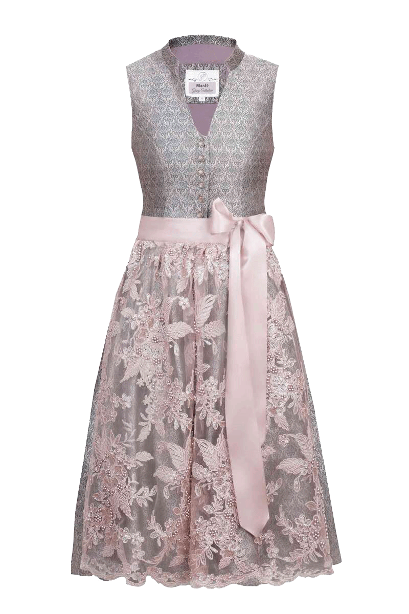 Midi-Dirndl V-Ausschnitt mit Spitzenschürze