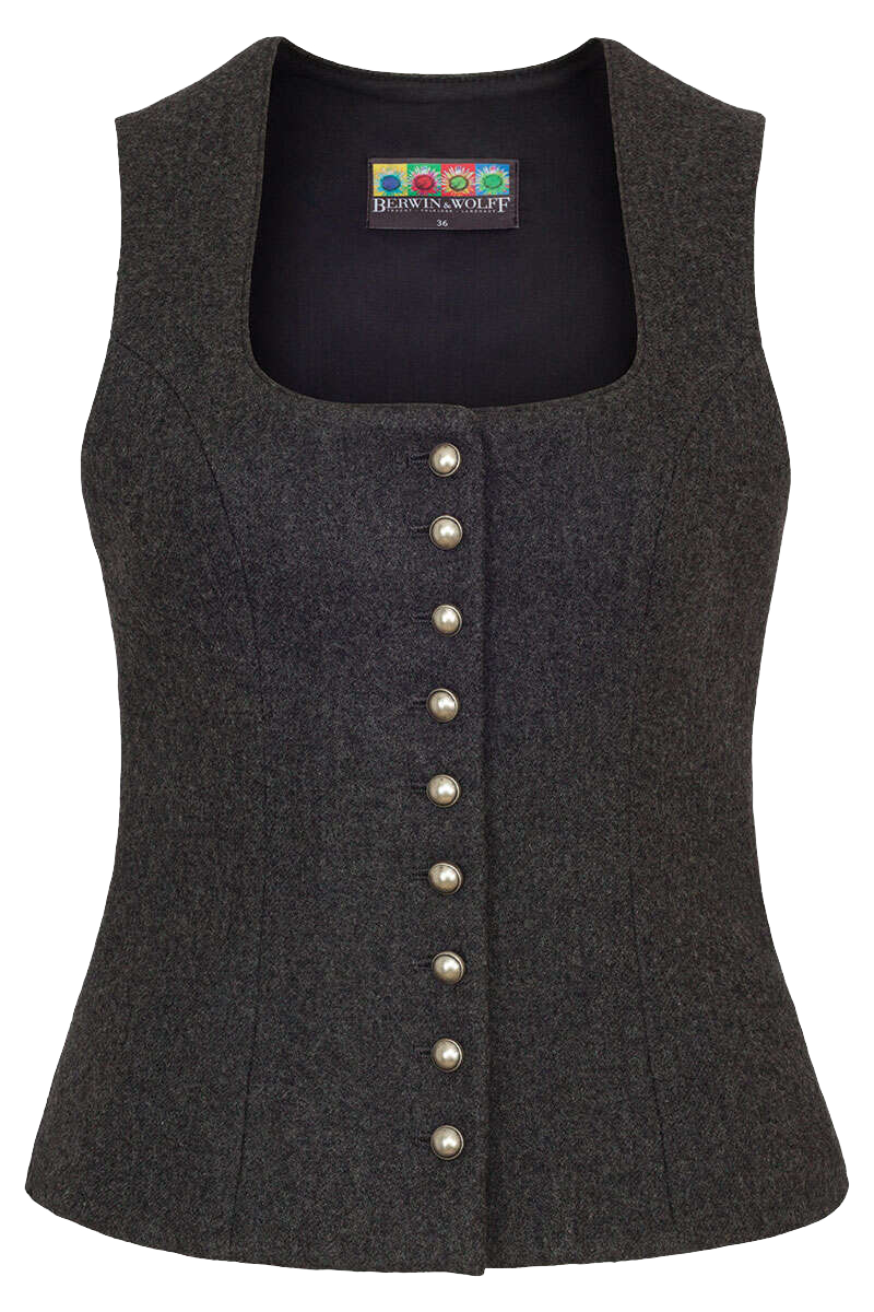 • Material und Farbe: Das Trachtenmieder von Berwin & Wolff ist aus 70% Schafschurwolle, einer Naturfaser, in grau gefertigt, was es sehr schick und gepflegt aussehen lässt.
