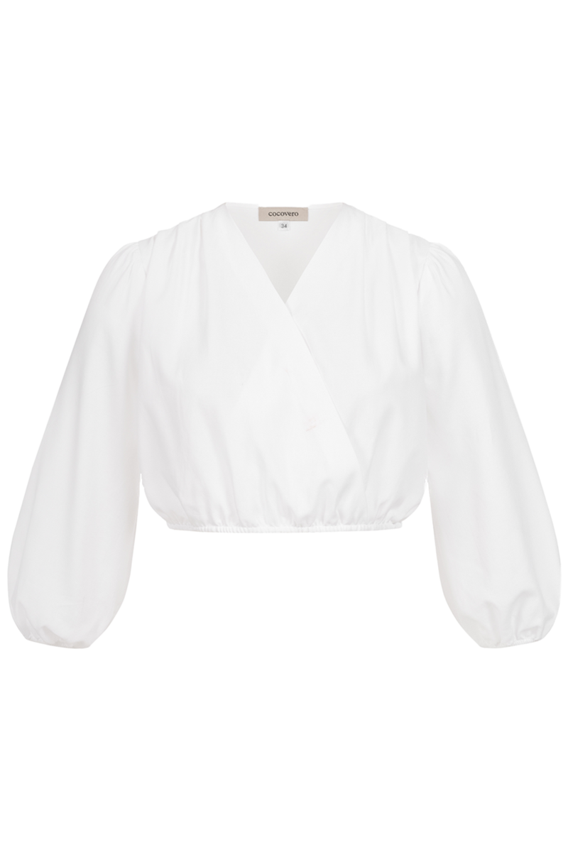 • Moderner Akzent: Der V-Ausschnitt in Wickeloptik und die leicht gepufften Ärmel verleihen der Bluse einen modernen Touch.