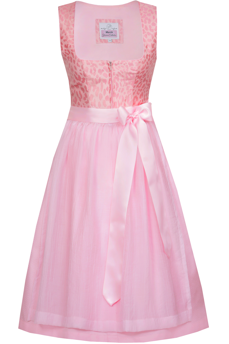 • Trendiges Leopardenmuster: Das Mieder des Midi-Dirndls INSINGEN in Puderrosa setzt mit seinem auffälligen Leopardenmuster modische Akzente und betont stilvoll das Dekolleté.