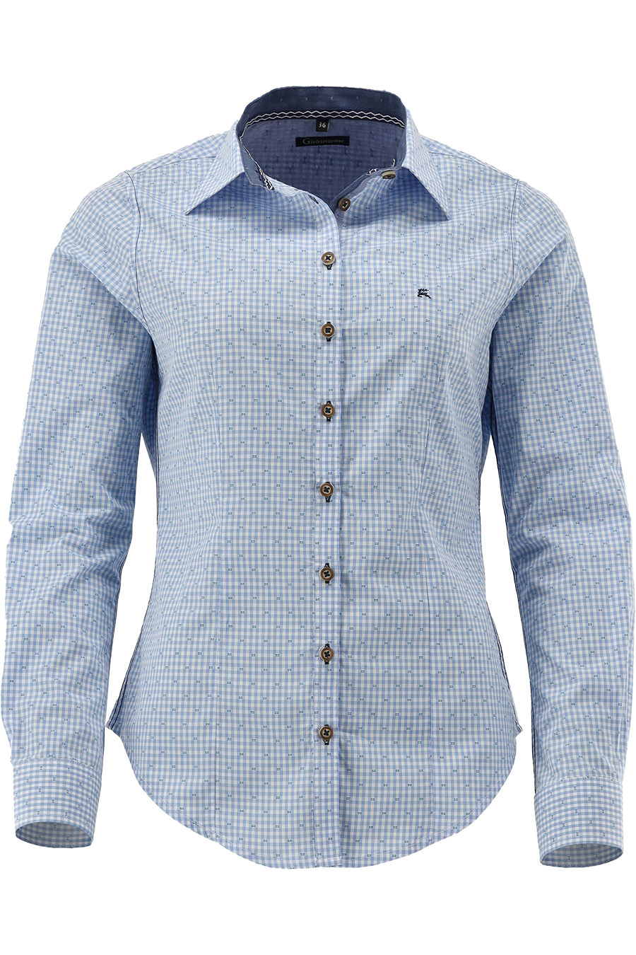 Damen Trachtenbluse kariert mit Hirschstickerei