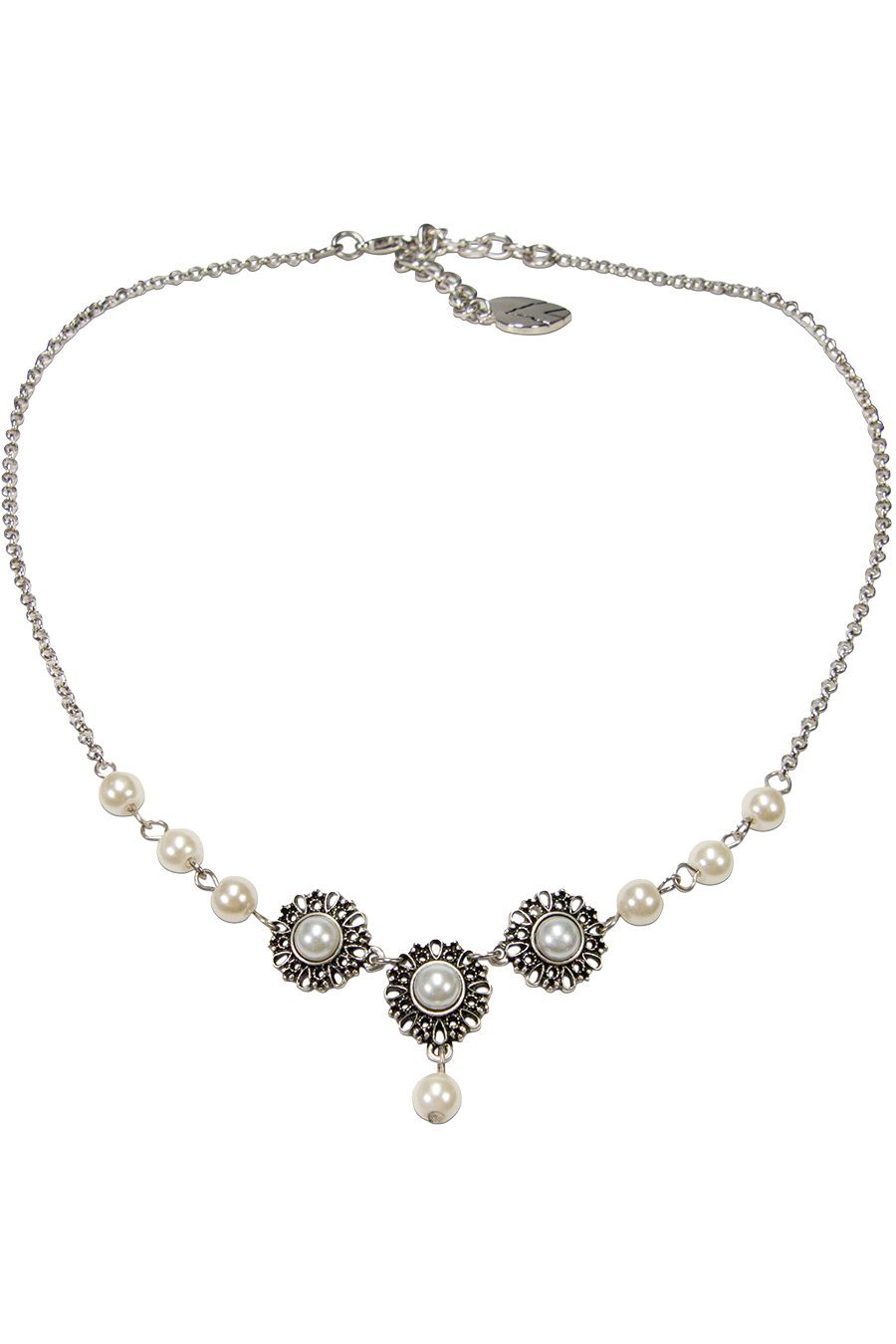 • Filigrane Damen Trachtenkette von Alpenflüstern mit 3 floralen Ornament-Anhängern & Perlen