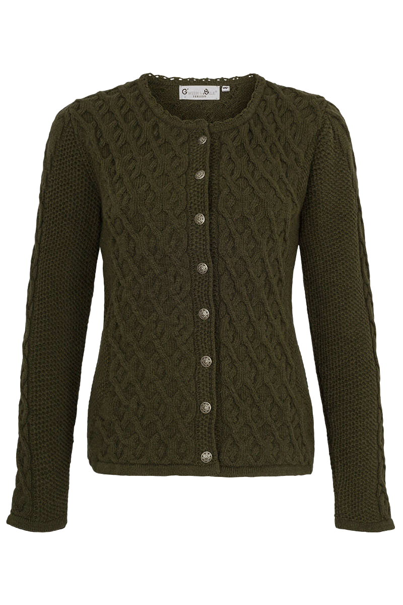 - Dezentes Trachtencharakter durch eingestricktes Zopfmuster: Das eingestrickte Zopfmuster auf Vorder- und Rückseite sowie an den Ärmeln verleiht der Jacke einen dezenten Trachtencharakter.