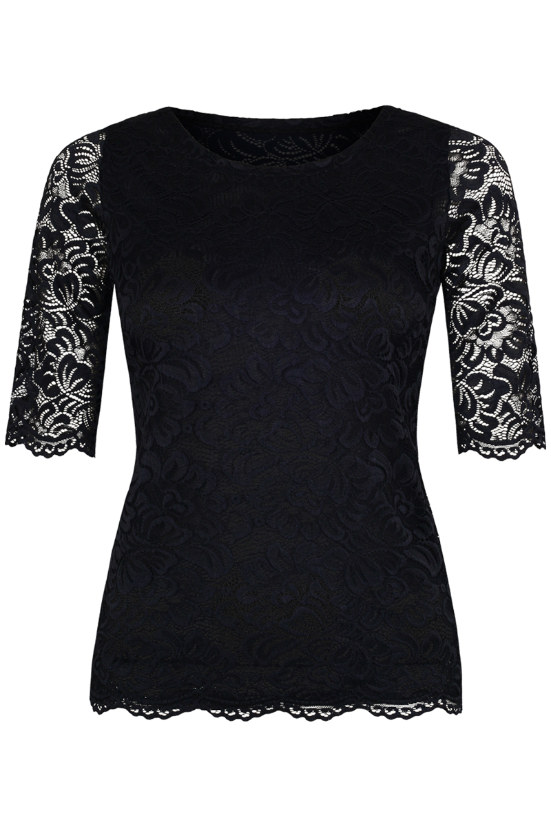 - Elegantes Design: Dunkelblaue Bluse von MyChoice mit hübscher, transparenter Spitze und filigranem Blumenmuster, ideal für einen stilvollen Auftritt.