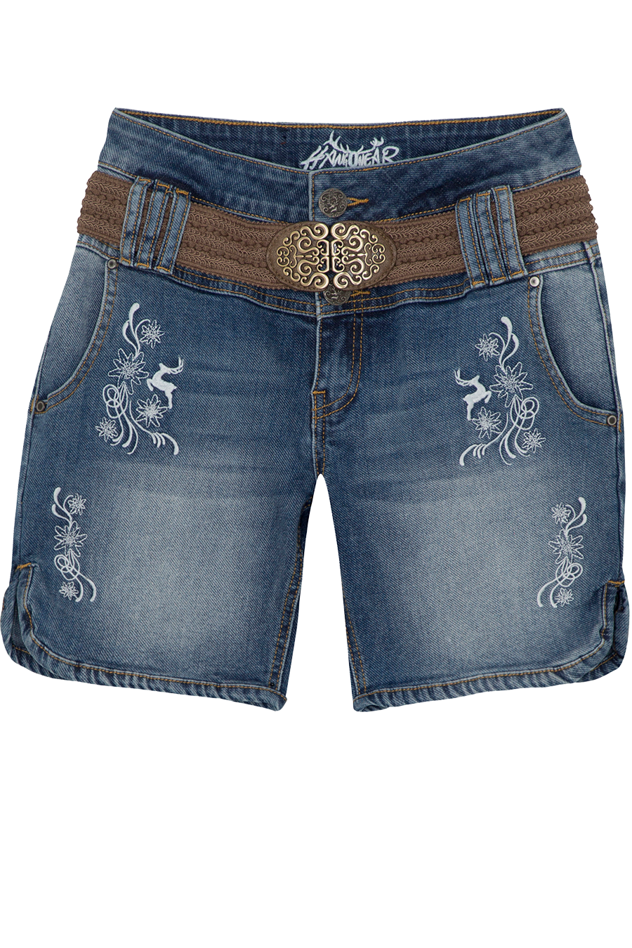 Damen Jeansshort mit Gürtel in Lederhosenoptik