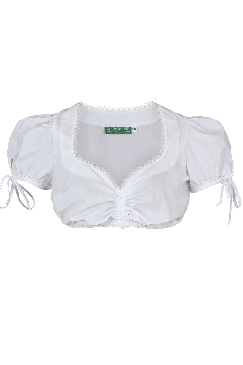 • Romantische, blickdichte Dirndl-Bluse mit Spitzen besetztem Herz-Ausschnitt und Puffärmeln