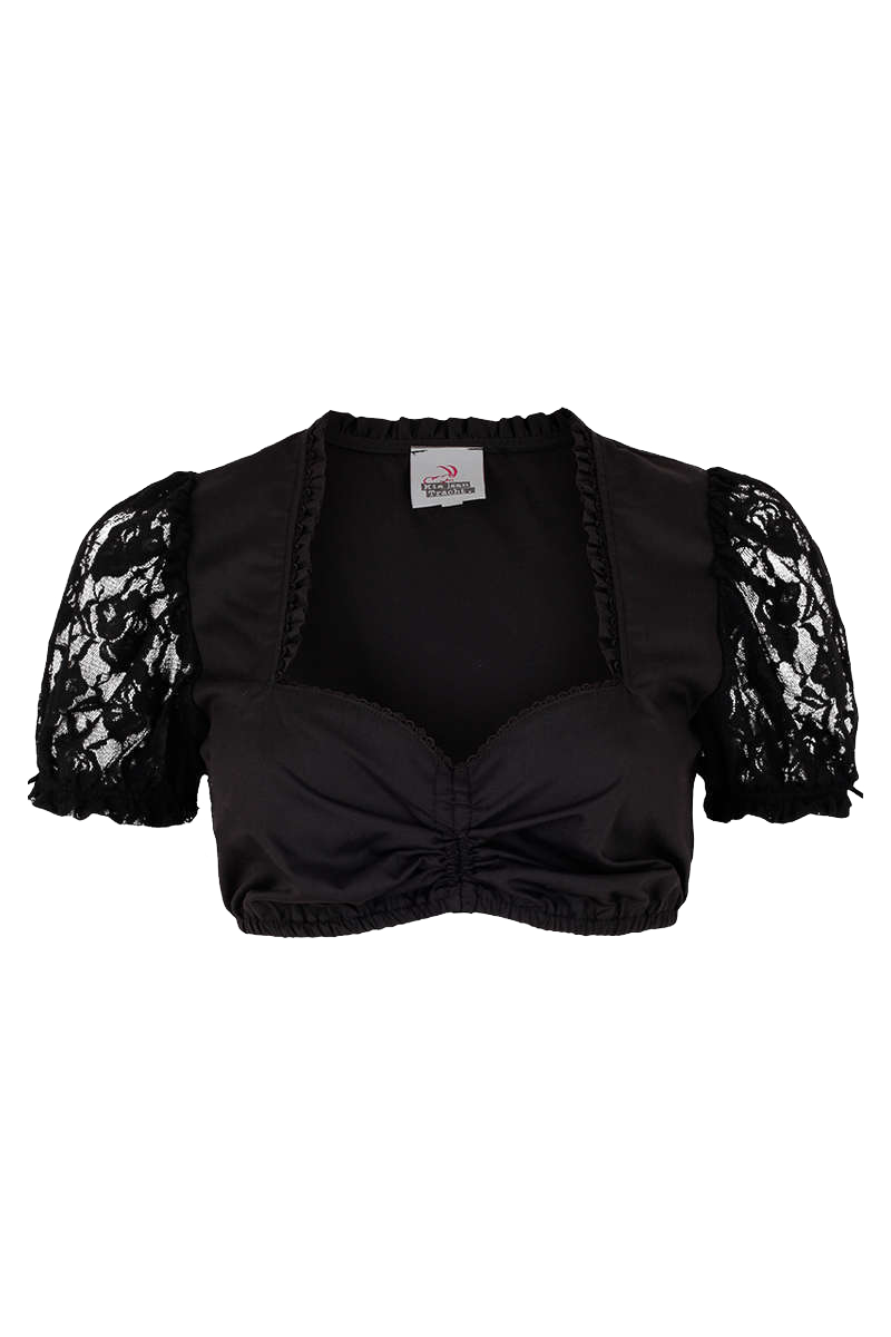 • Traditionelle weisse Dirndlbluse mit rüschenbesetztem Ausschnitt und transparenten Spitzen- Ärmeln