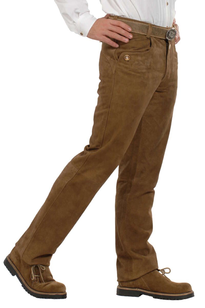 - Lange rehbraune Trachten-Lederhose aus hochwertigem Wild-Bock-Leder mit Reisverschluss (männliche Ziege)