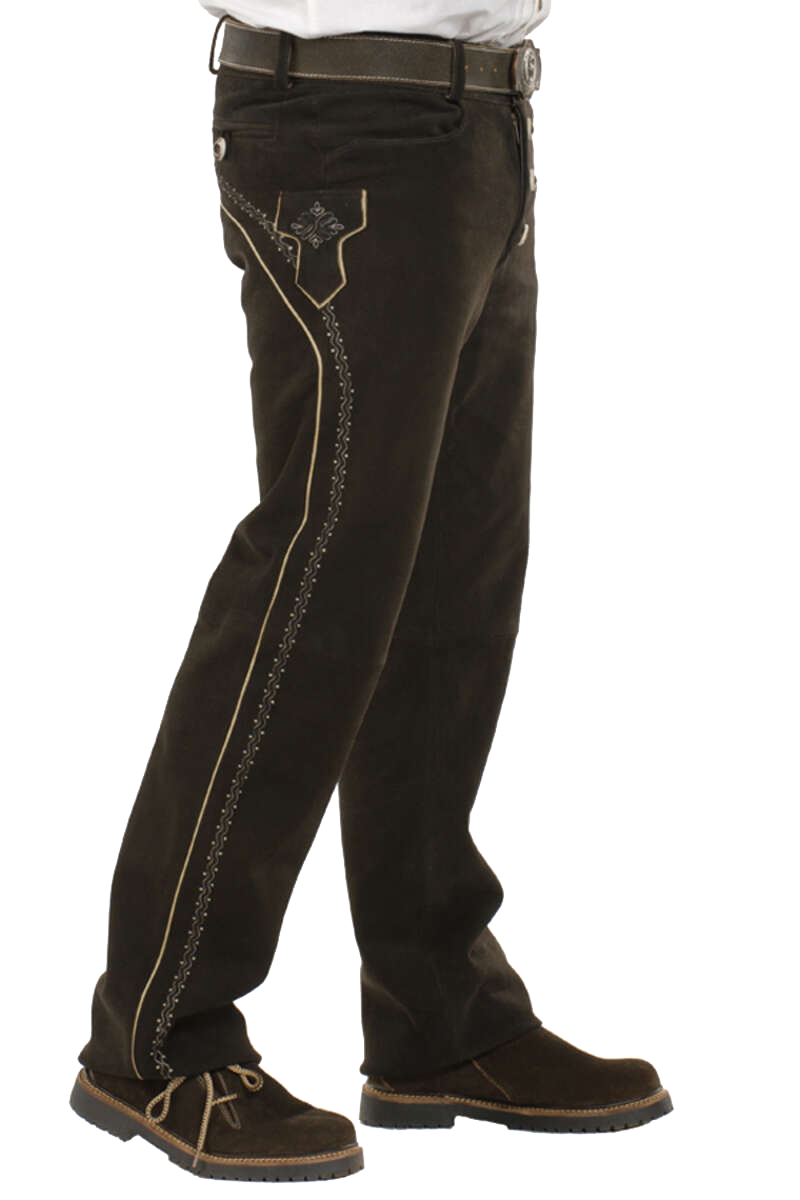 - Lange altschwarze Trachten-Lederhose aus hochwertigem Wild-Bock-Leder mit aufwendiger Stickerei (männliche Ziege)