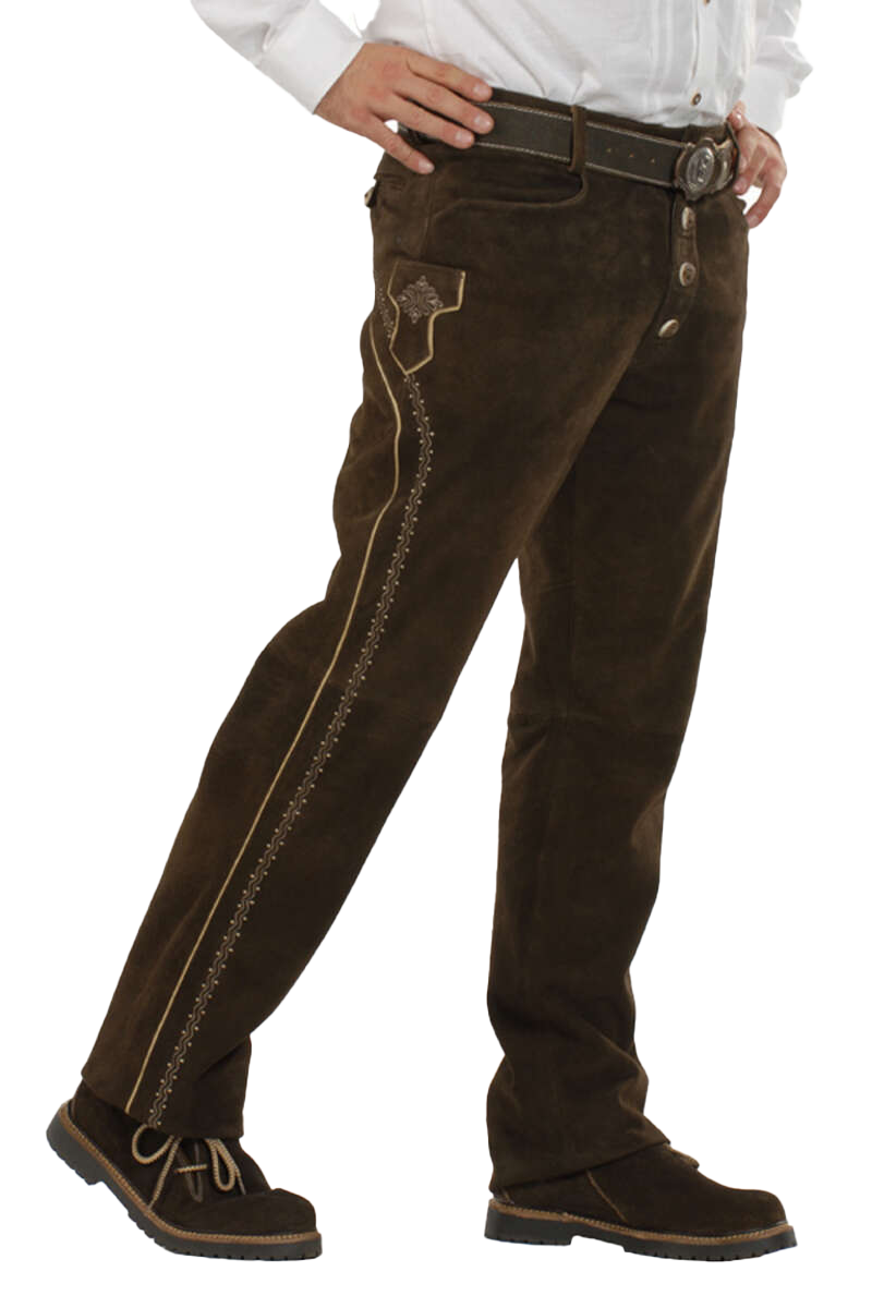 - Original ausgeblasene Stickerei nach bayerischer Tradition am Hosenbein und der Tellernaht im Gesäß entlang