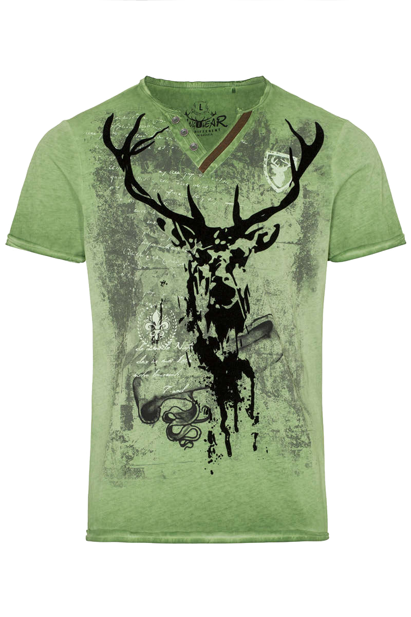 - ELVIS ist ein grünes T-Shirt in lässigem Design mit großem Hirschaufdruck in Samtoptik