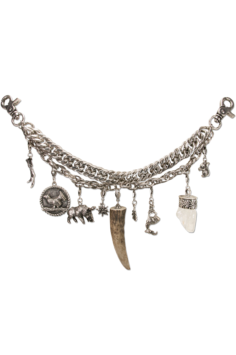 • Massive Metallkette für die Lederhose mit traditionellen Trachten-Anhängern