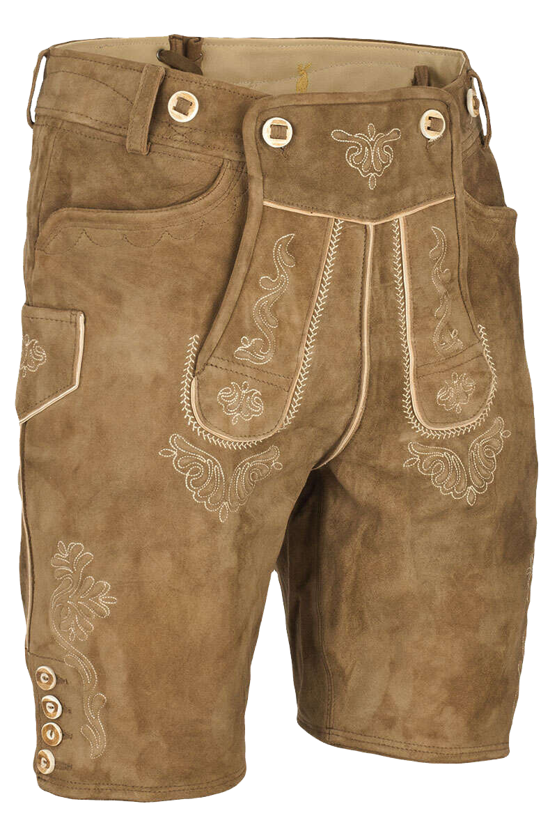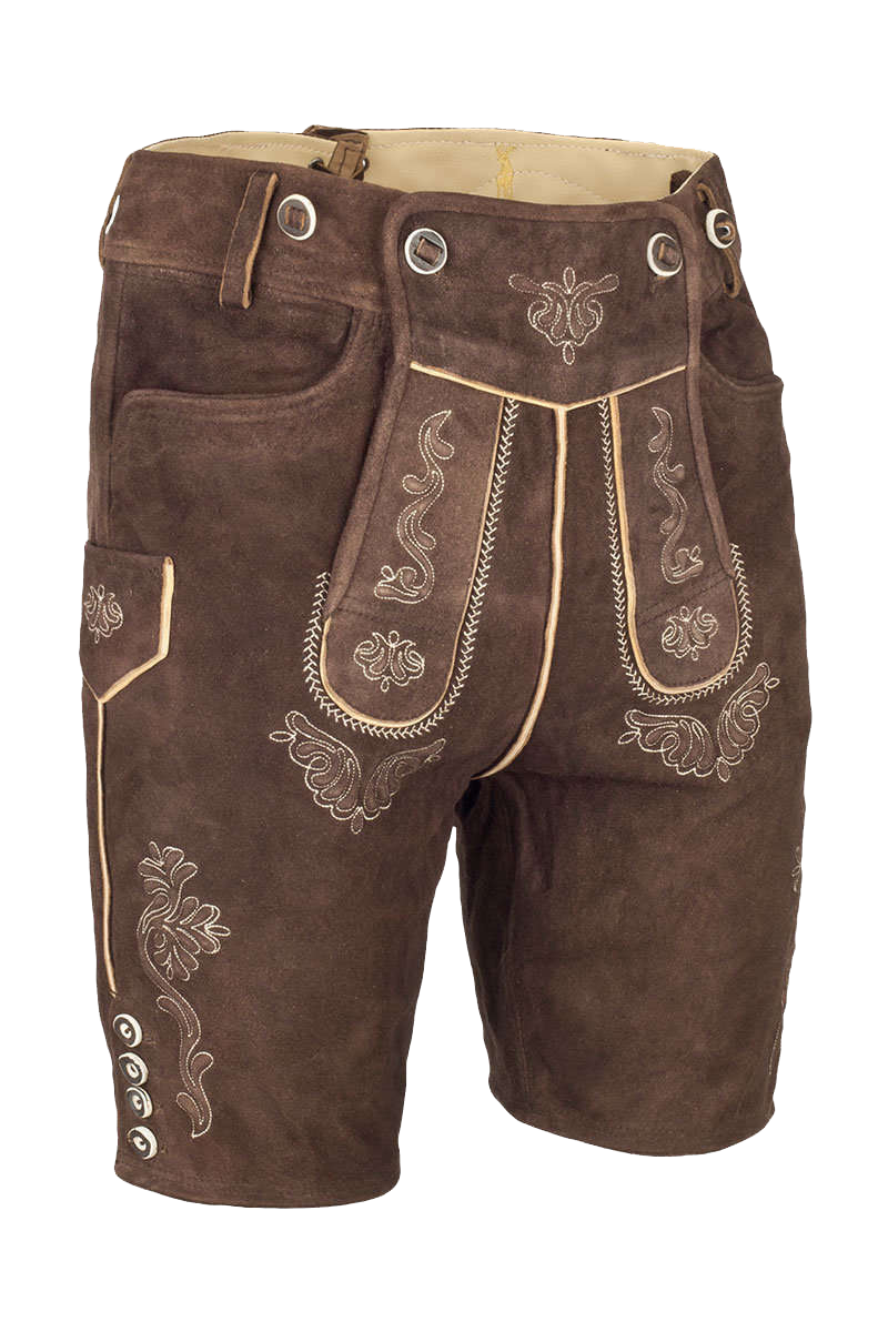 - attraktive kurze Lederhose mit modisch schlankem Schnitt aus braunem Wildbock-Leder