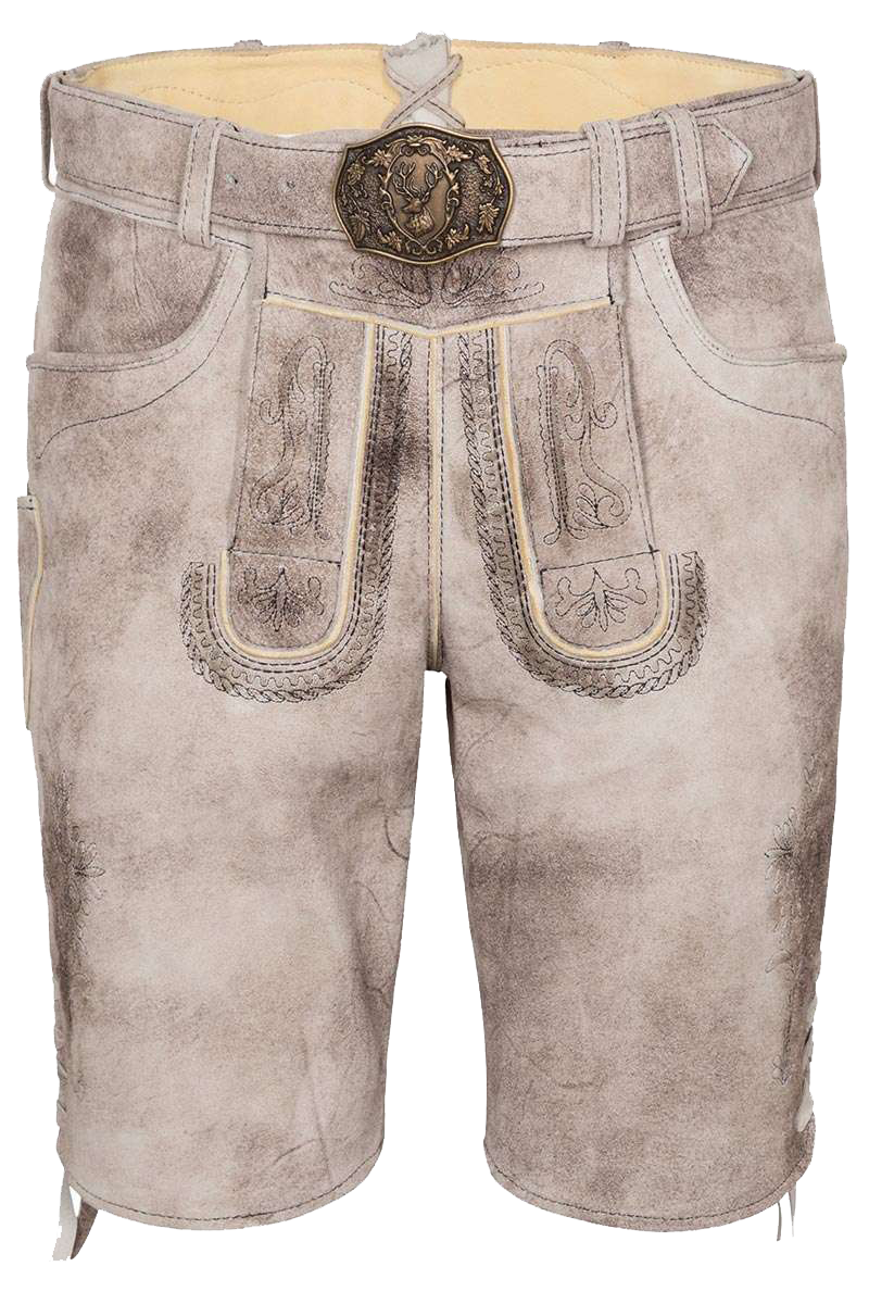 Herren Lederhose kurz mit Gürtel mit schwarzer Stickerei