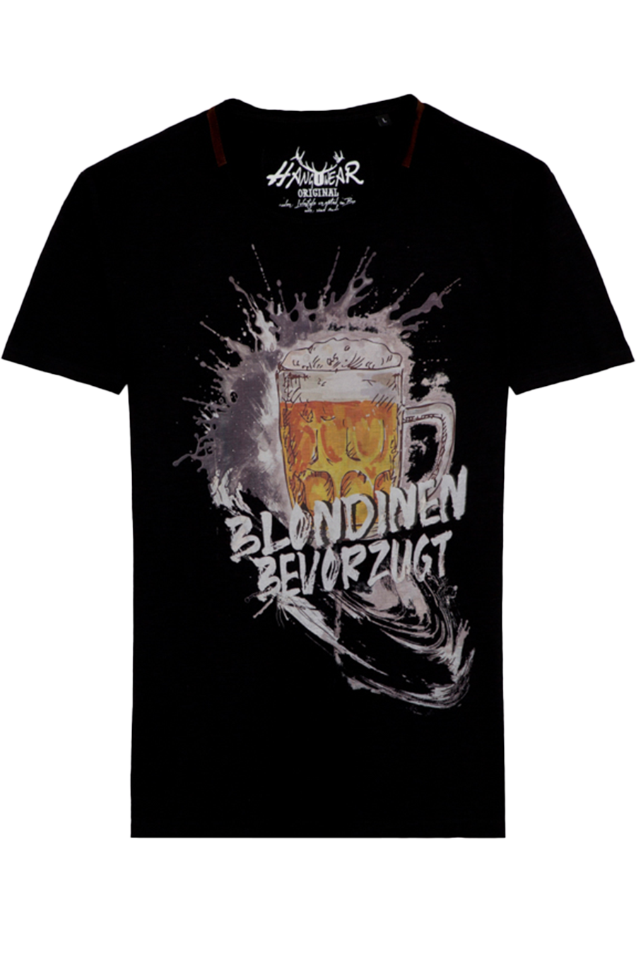 • Das Herren-T-Shirt GRISCHA von hangOwear zieht mit humorvollem Frontprint featuring Maßkrug und dem Schriftzug „Blondinen bevorzugt“ alle Blicke auf sich.