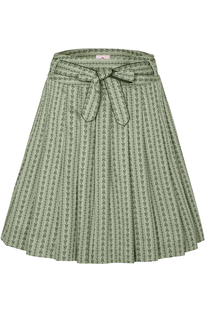 • Fröhlicher Trachten-Faltenrock in hellem grün mit kleinem Streifenmuster aus Ranken und Tupfen