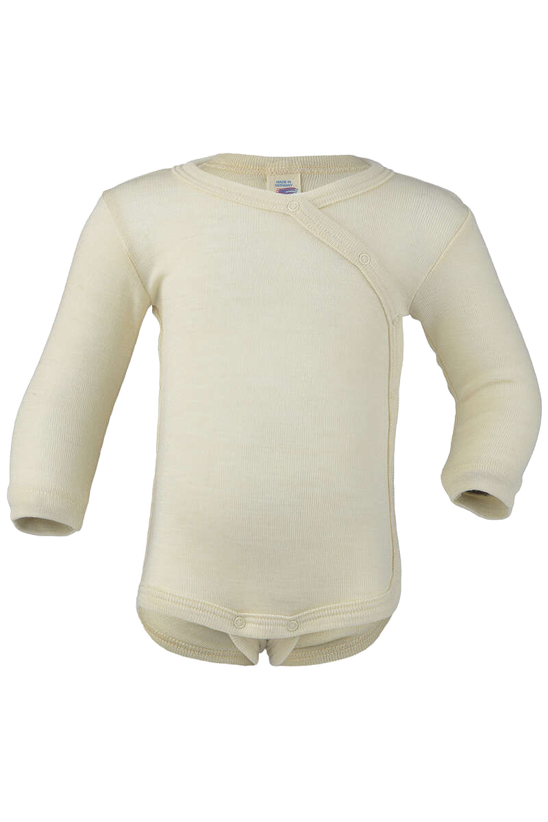 - Hochwertiger Baby-Wickelbody aus Merinoschurwolle und Seide – kuschelig weich, hautfreundlich und ideal für empfindliche Babyhaut.