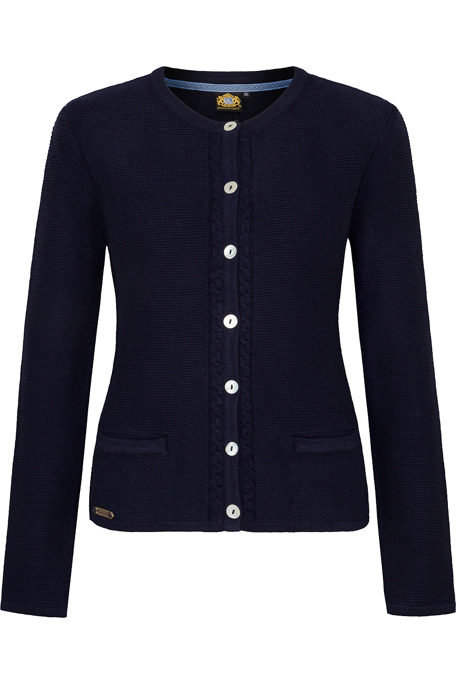Damen Trachten-Strickjacke mit Zopfstrickmuster und Perlmuttknöpfen