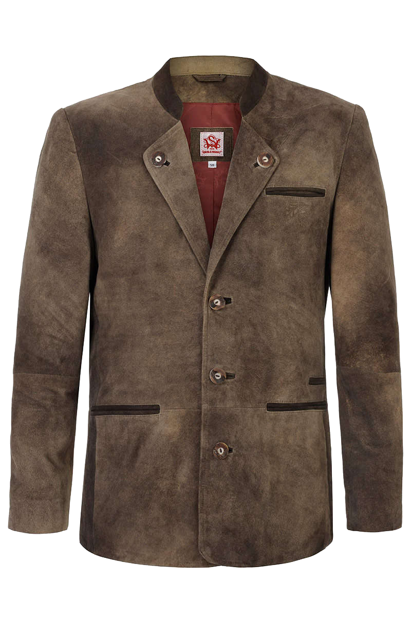 • Modisches Trachten-Leder-Sakko mit Revers und geradem Schnitt
