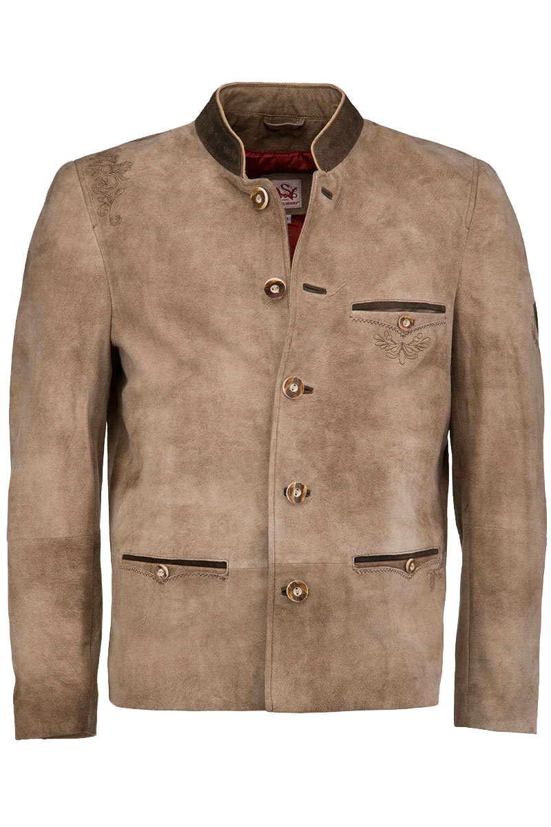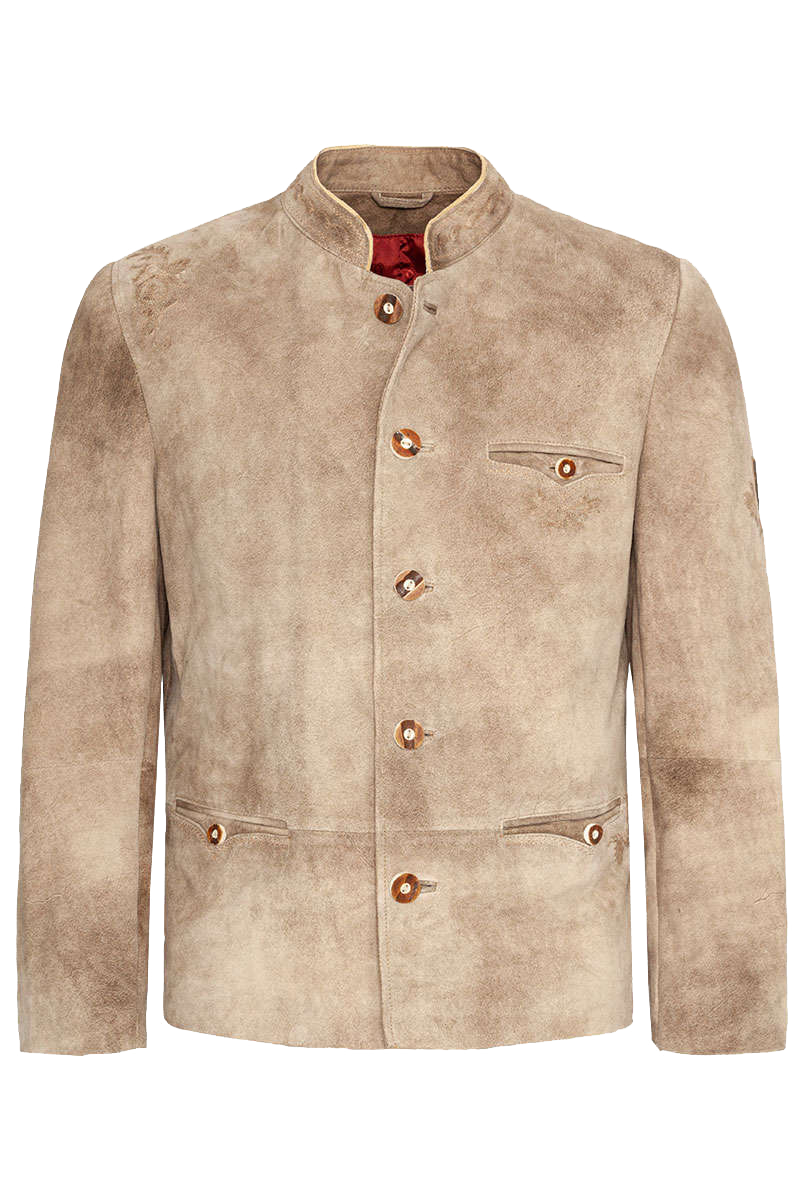 - Herren Lederjacke mit Ton in Ton Stehkragen