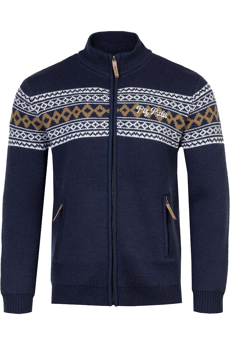 • SCHWABBRUCK ist eine sportive dunkelblaue Herren-Strickjacke von Piz Palü