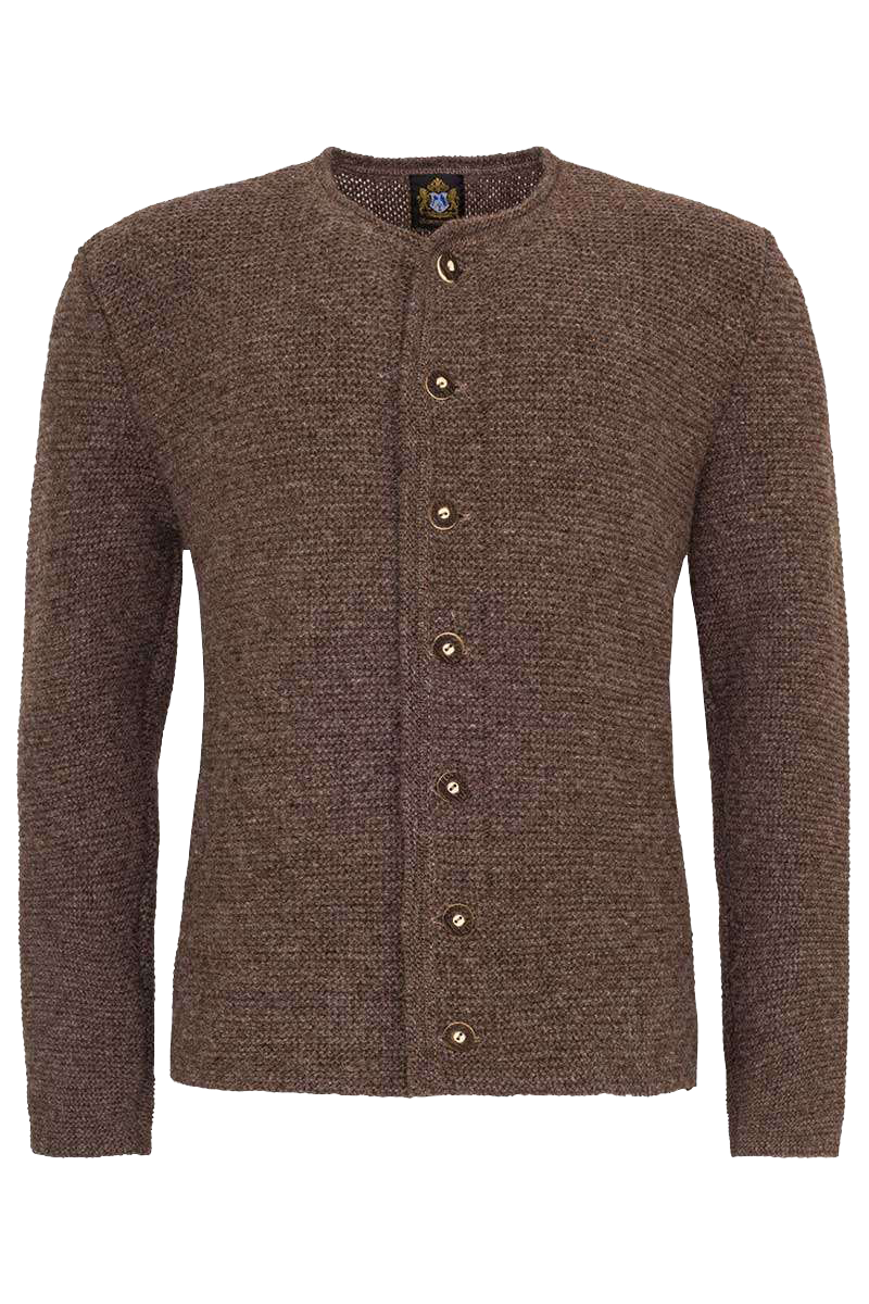 - Diese Herren-Strickjacke in Dunkelbraun ist im klassischen Links-Links-Strick gearbeitet