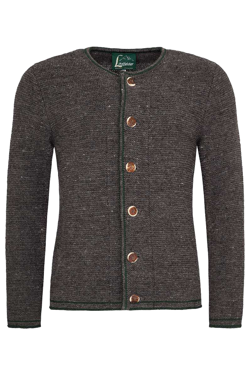 • Hellgraue Herren Trachtenjacke aus 100% Schurolle von Litzlfelder mit Knöpfen in Hirschhornoptik