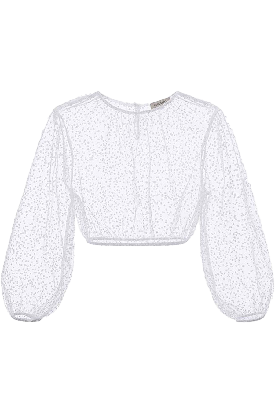 • Die Dirndlbluse OPHIE von CocoVero begeistert mit feinem Tüll und zartem Punktemuster für eine glamouröse Ausstrahlung.