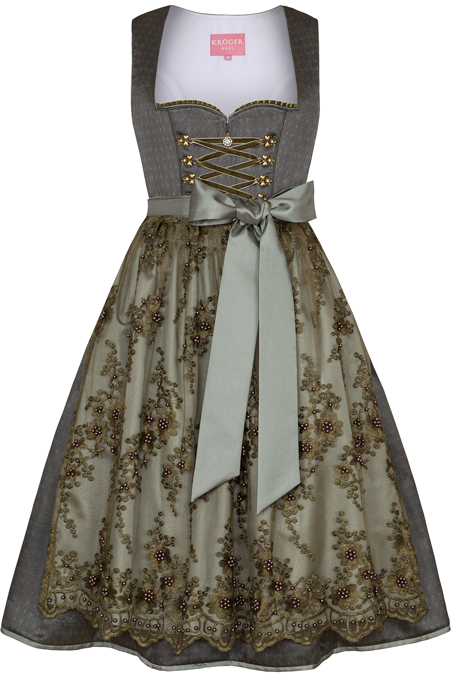 • Feminines Midi-Dirndl von Krüger mit zartem, kleinteiligem Muster. Rocklänge in Größe 36 beträgt ca. 70 cm.