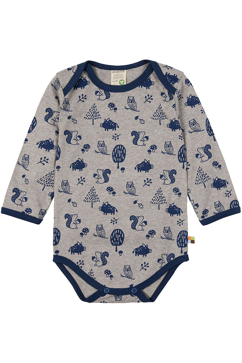 • Süßer grauer Baby-Langarmbody aus 100% GOTS-zertifizierter Biobaumwolle, äußerst angenehm auf der Haut