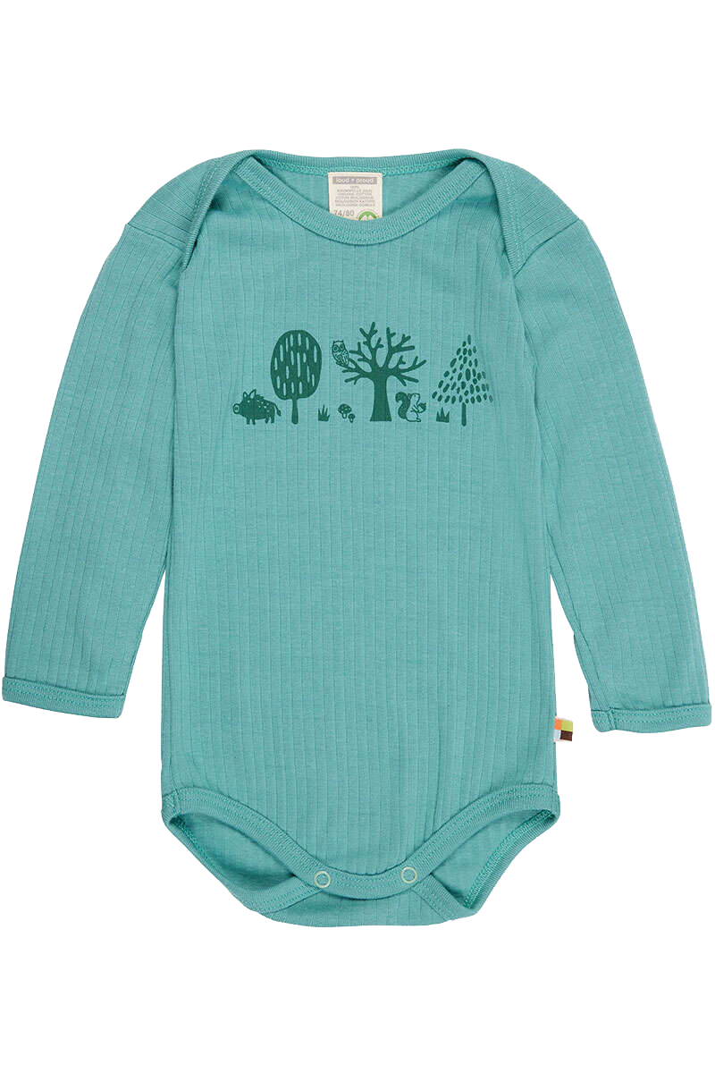 Babybody Waldtiere aus gerippter Bio-Baumwolle langarm